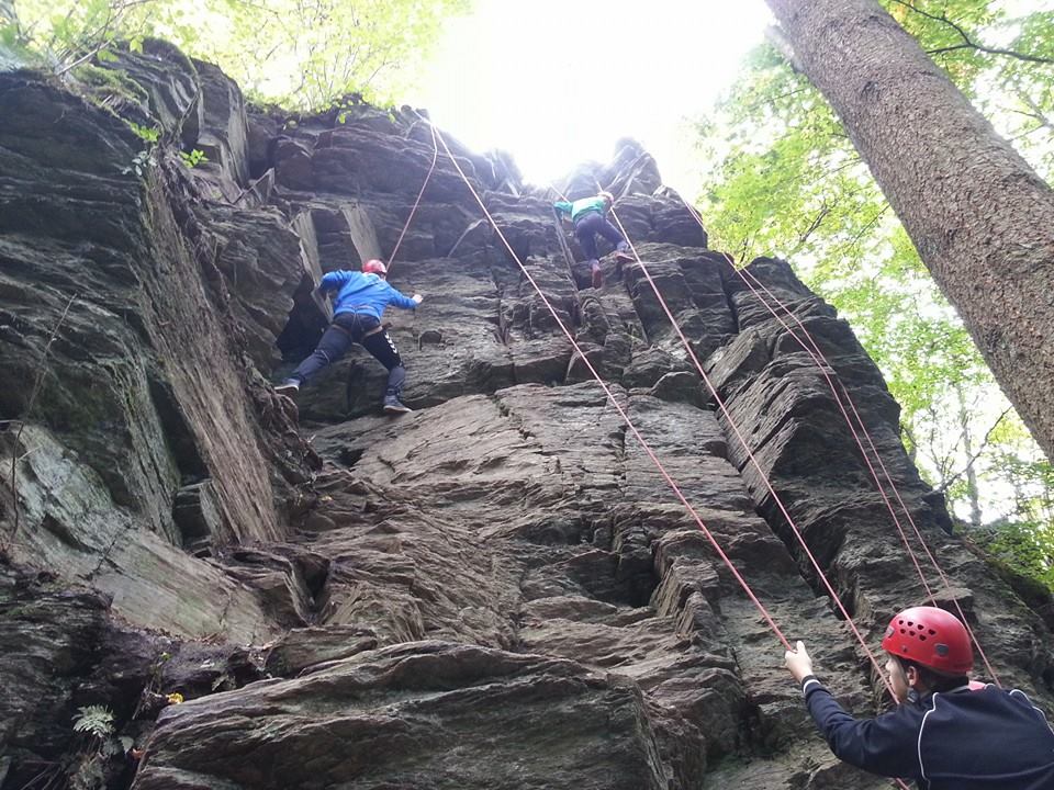 Het galmende gelach en gegil uit de verte versterkt dit beeld alleen maar. Kijk iets verderop en je ziet een paar Brandsport helmpjes van een hoge rots abseilen, om vervolgens weer terug naar boven te klimmen voor de volgende ronde afdalingen. Soms vergeten we het, maar in de Ardennen zijn niet alleen bomen, struiken en rivieren te vinden. Verstopt in de bossen vind je ook een paar flinke rotsen. En als je er een beetje creatief mee omgaat, kan je er veel plezier aan beleven.